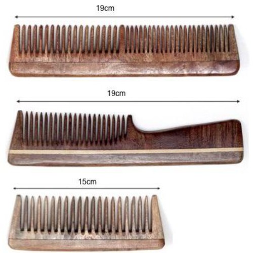Fabricados con madera de neem 100% pura, estos peines artesanales están meticulosamente pulidos a mano, asegurando un acabado suave sin el uso de químicos. ◦ Portátil y práctico: El peine compacto es perfecto para llevar en tu bolso, permitiéndote mantener tu peinado sin esfuerzo, en cualquier momento y lugar. ◦ Cuidado lujoso: El peine largo es ideal para una sesión de cuidado exhaustiva, especialmente después del champú, brindando a tu cabello la atención que merece. ◦ Rápido y conveniente: El peine con mango ofrece facilidad y rapidez cuando te preparas para salir, haciendo tu rutina de cuidado eficiente y sin complicaciones.
