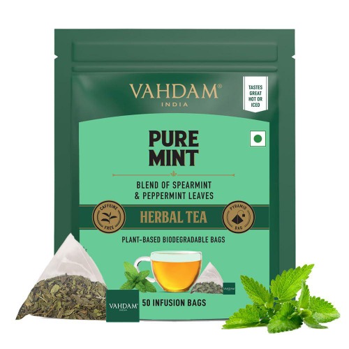 Té de Hierbas de Menta Pura (Pure Mint Herbal Tea | Vahdam) 50teabags